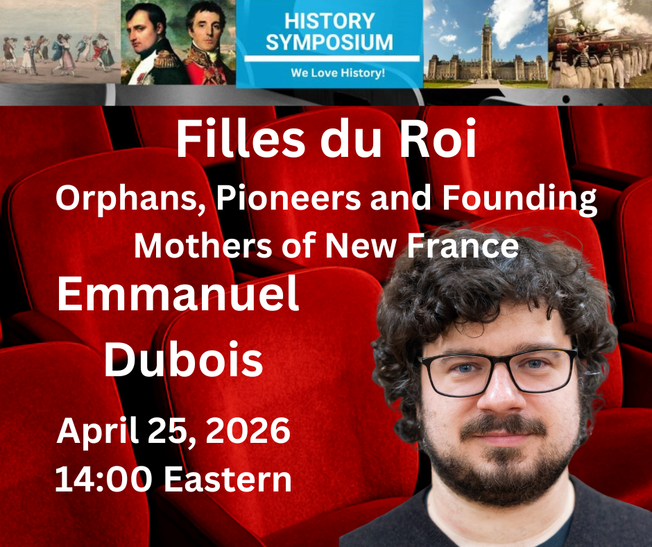 « All Events Emmanuel Dubois – Filles du Roy: Orphans, Pioneers, and Founding Mothers of New France, 1663-1673 April 25 @ 2:00 pm – 3:00 pm More InformationDubois Registration Add to calendar Google Calendar iCalendar Outlook 365 Outlook Live
